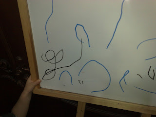 One of the pictures had a board on it so I thought about giving Sarah my white board and seeing hat she'll come up with. She could finally draw a circle, she drew a lot of inverted Cs :-) BUT seriously, look how she holds the marker, I find it amazing :-) The sun is mine ;-)